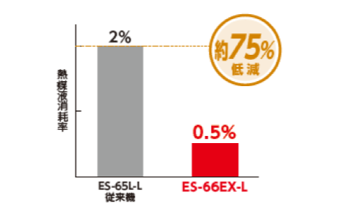 *日立旧型(ES-65EX-L)および当社後継機エクセレント(ES-66EX-L)製品比較